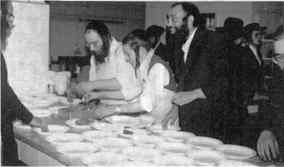 flown in from Israel, including challahs, fish, salads, soup, chicken...