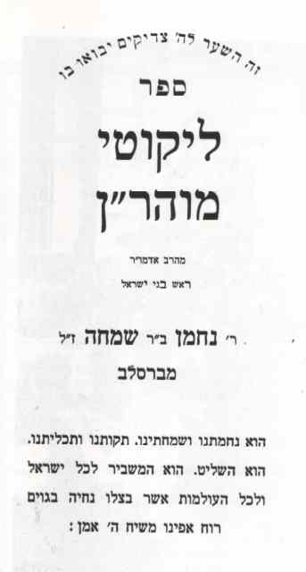 Likutei Morharan printed in Jerusalem