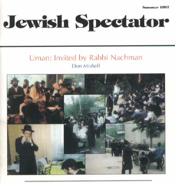 Copyright (c) 1997 Jewish Spectator; published quarterly, sponsered by the Center for Jewish Living and Values, a non-profit educational corporation, POB 8160, Calabasas, CA, 91372-8160, 818-591-7481, email JewishSpec@aol.com (Note: Jewish Spectator presents views from many perspectives, including reform, conservative and orthodox)